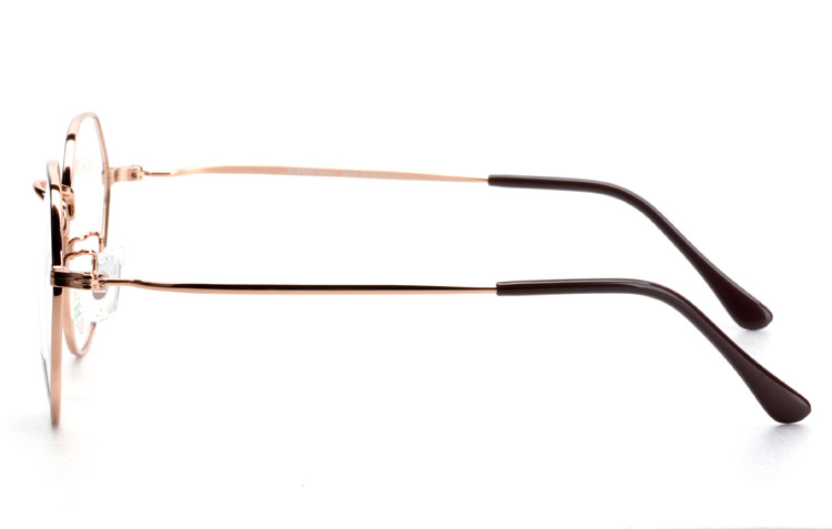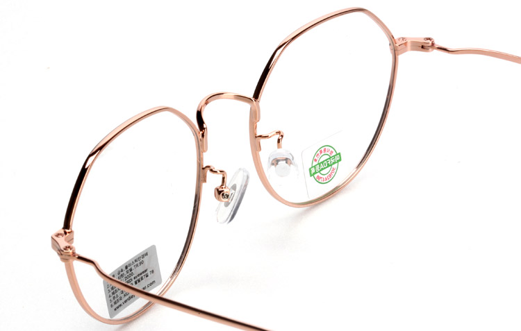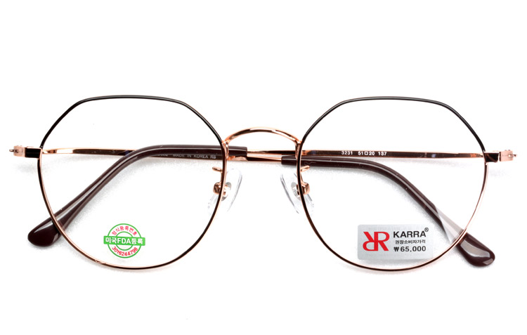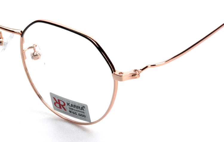 - Metal optical frame with half round half polygon shape.