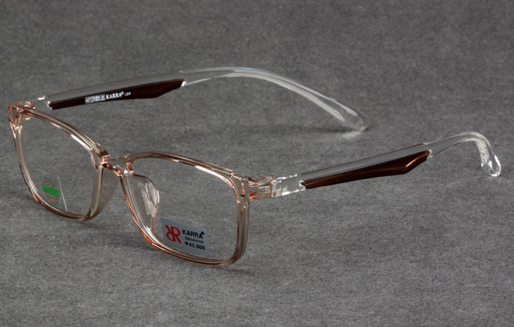 - Light TR frame with rectangular front and color bar inserted temples.