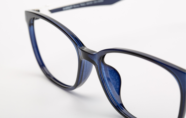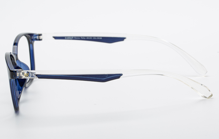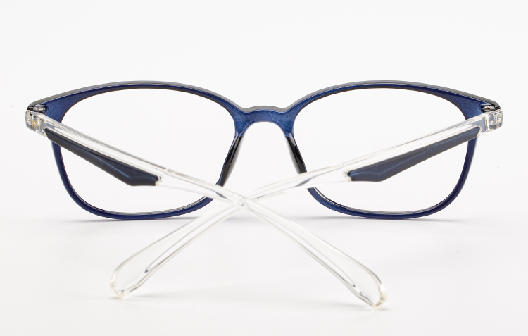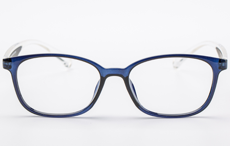 - Light TR frame with rectangular front and color bar incerted temples.