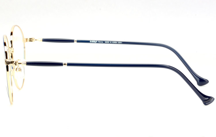 - Round metal frame with unique acetate temples