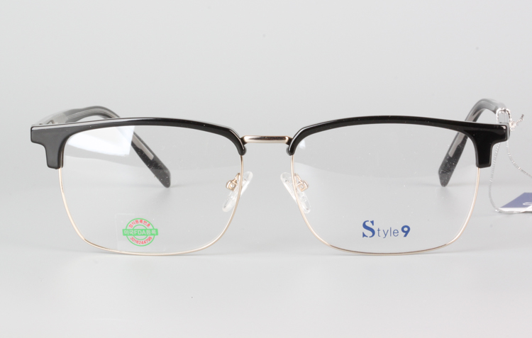 - Big size Half-rim metal frame with brow bars + Acetate temples with benable tips