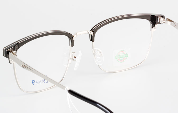 - Half-rim metal frame with brow bars + metal temples with benable tips