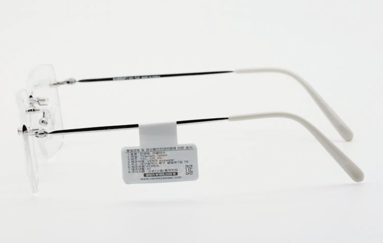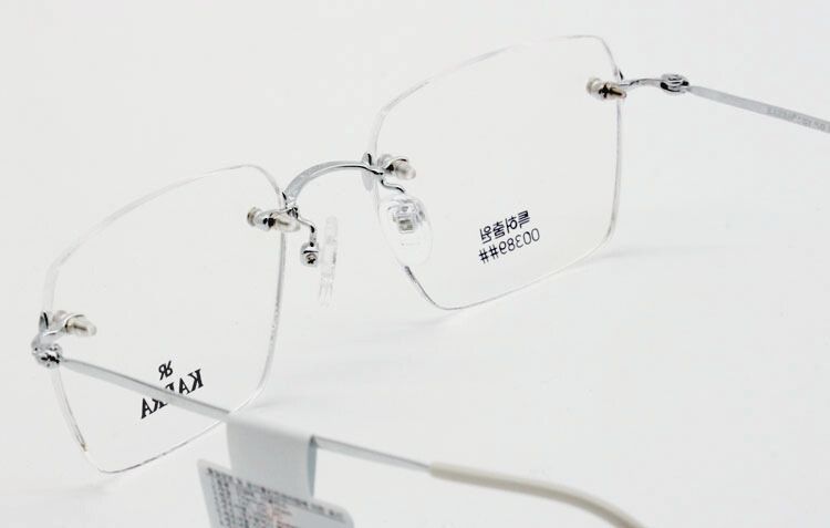 Rimless metal frame with classic rectangular front/demo lense with more acute angles