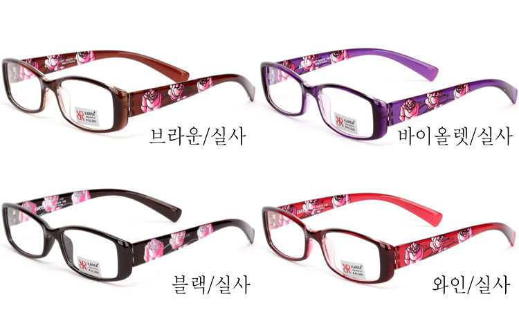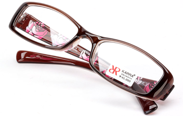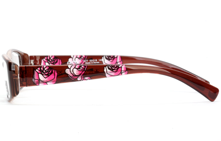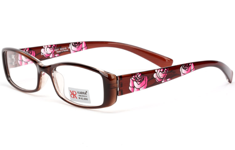 - TR frame for older women with rounded rectangular front and rose printing on temples