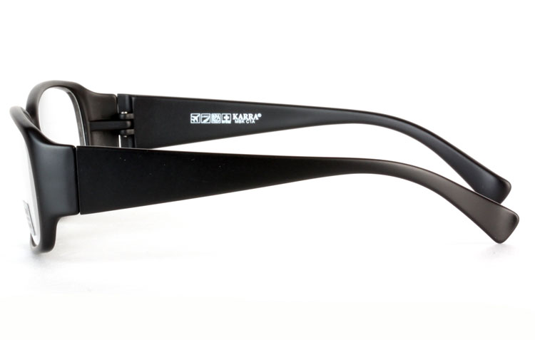 - Wide rectangular front with thick temples