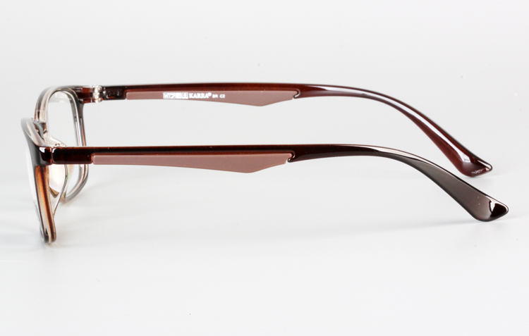 - Light TR frame with rectangular front and color bar inserted temples.