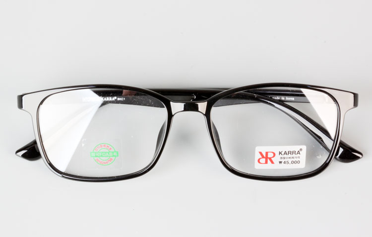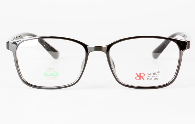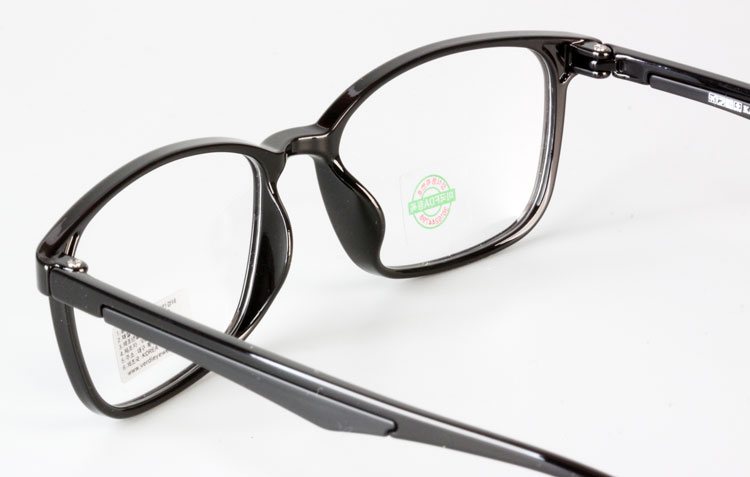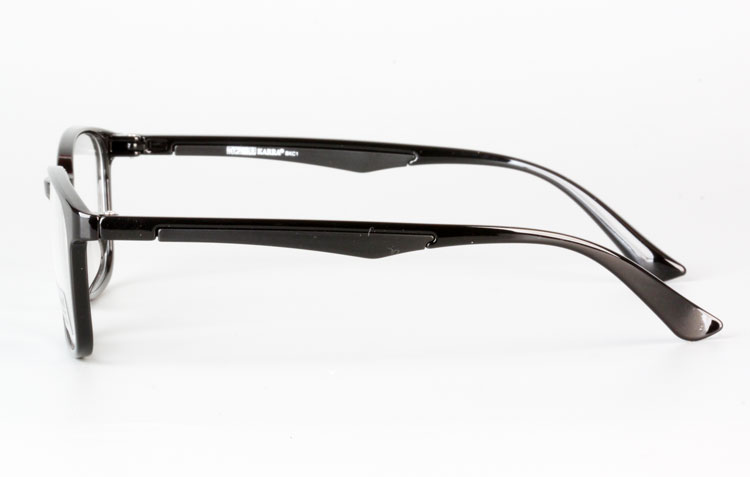 - Light TR frame with rectangular front and color bar inserted temples.