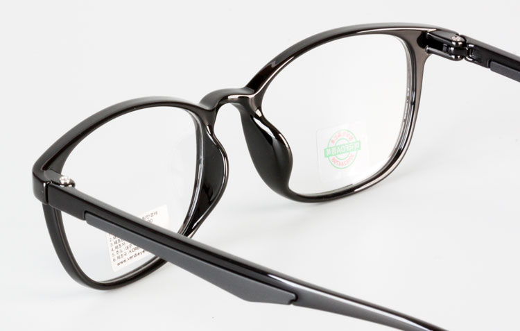 - Light TR frame with rectangular front and color bar inserted temples.