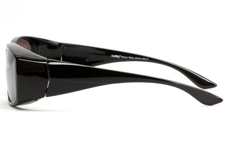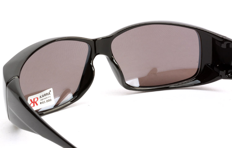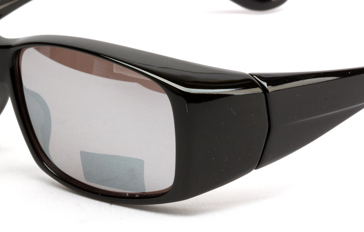 Safety-glasses-like front and thicker temples block sunlight from the both sides more efficiently.
